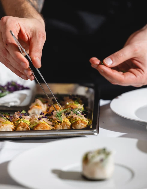 The Chef's Table menu is always different, depending on the guest's taste. Our Executive Chef Fabrizio Zanetti, ‘Rising star of the year 2024’ in the Guide GaultMillau, works with you to coordinate the menu, recommending dishes based on market-fresh products wish are delivered to Suvretta House every day.