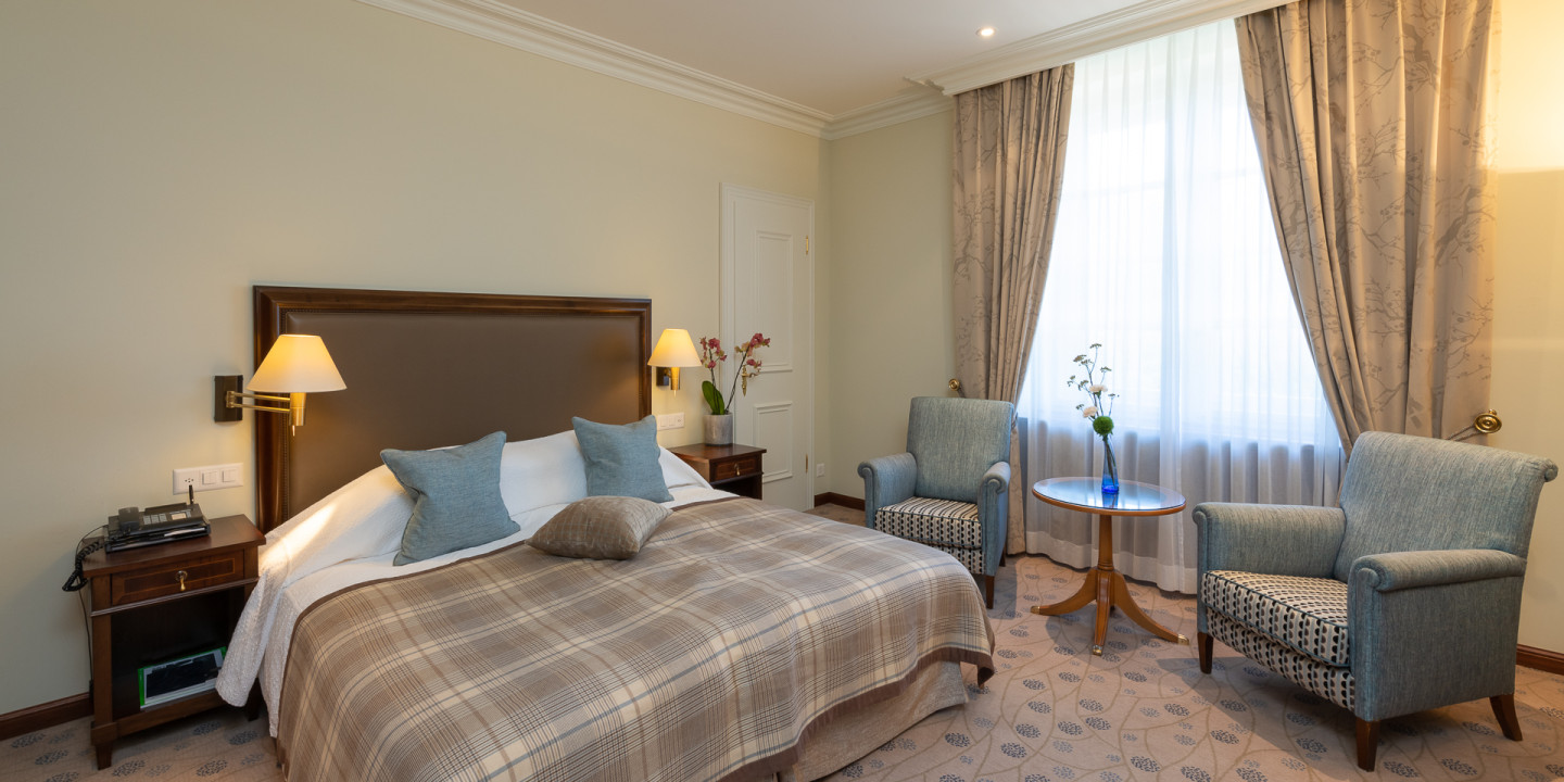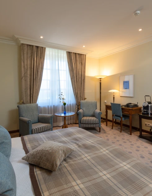 These tastefully furnished, south-facing double rooms are approx. 35 m² in size and have a spectacular view of the lake. A fresh flower, some fruit, lovingly fluffed pillows: It's the little touches that make all the difference.