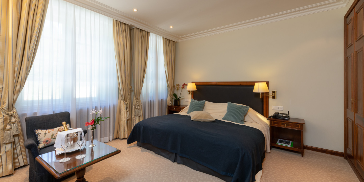 Generous windows offer views of the Corviglia and Piz Nair. The warm colours in these 35 to 40 m² rooms create a tranquillity that invites you to rest and relax. After an active day in the breathtaking nature of the Upper Engadine, you will want to come ‘home’.