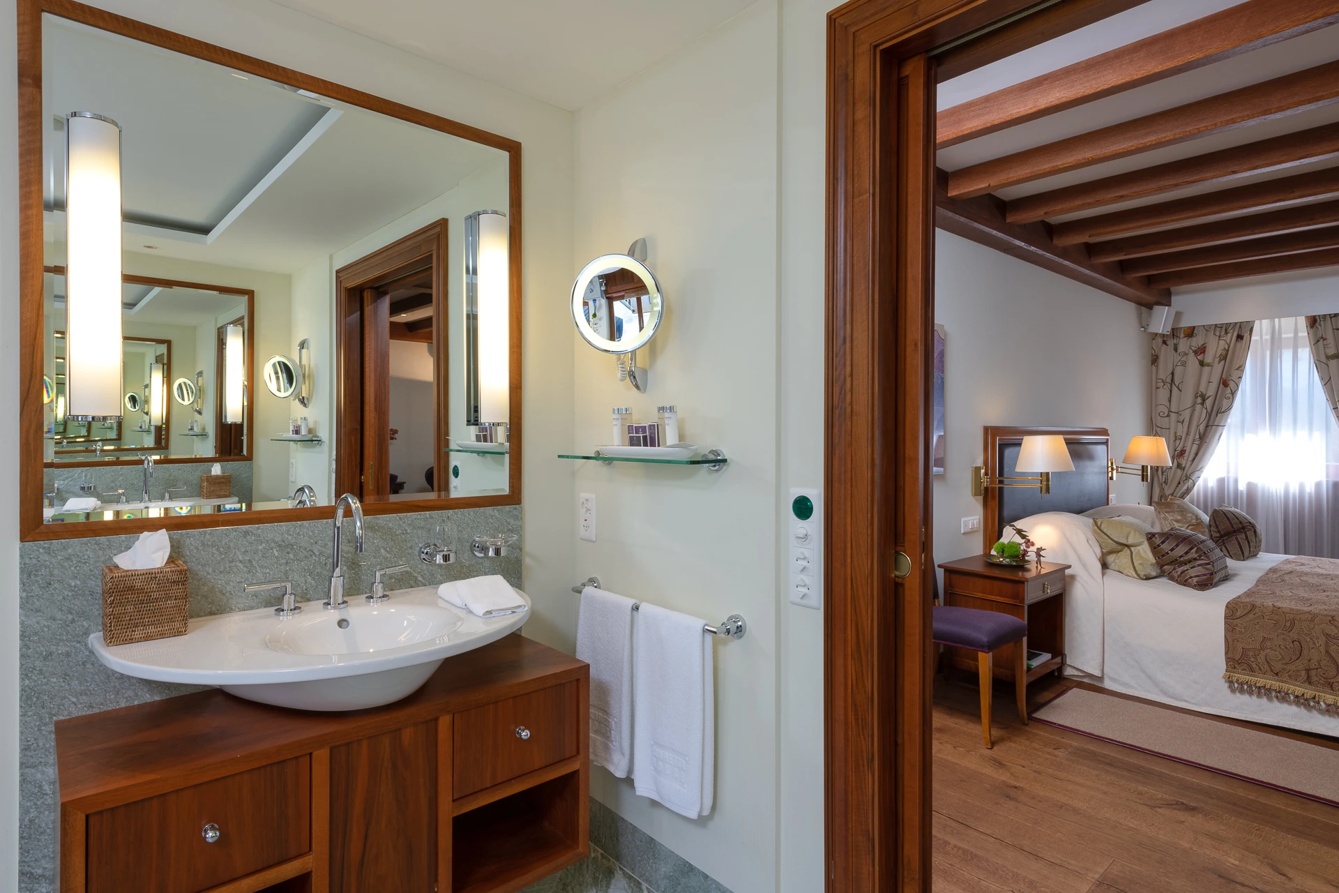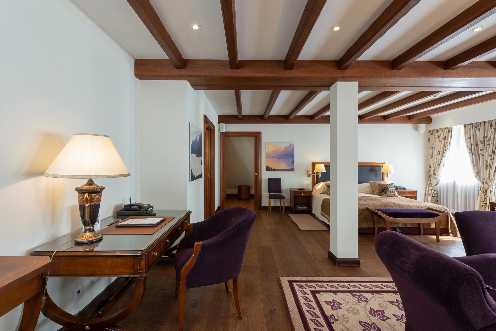 This 90 m2, charmingly furnished north-east-facing suite with a rustic beamed ceiling offers a magnificent view of the Corviglia skiing and hiking area. It has a spacious bed-sitting room with parquet flooring, a walk-in wardrobe and designer bathroom with free-standing bathtub and large shower with a view of the Suvretta slope.