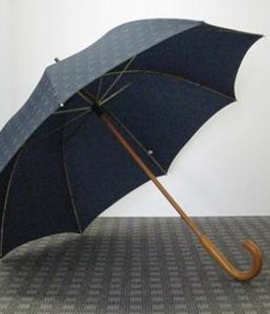 Premium, dark-blue Suvretta umbrella with wooden handle.