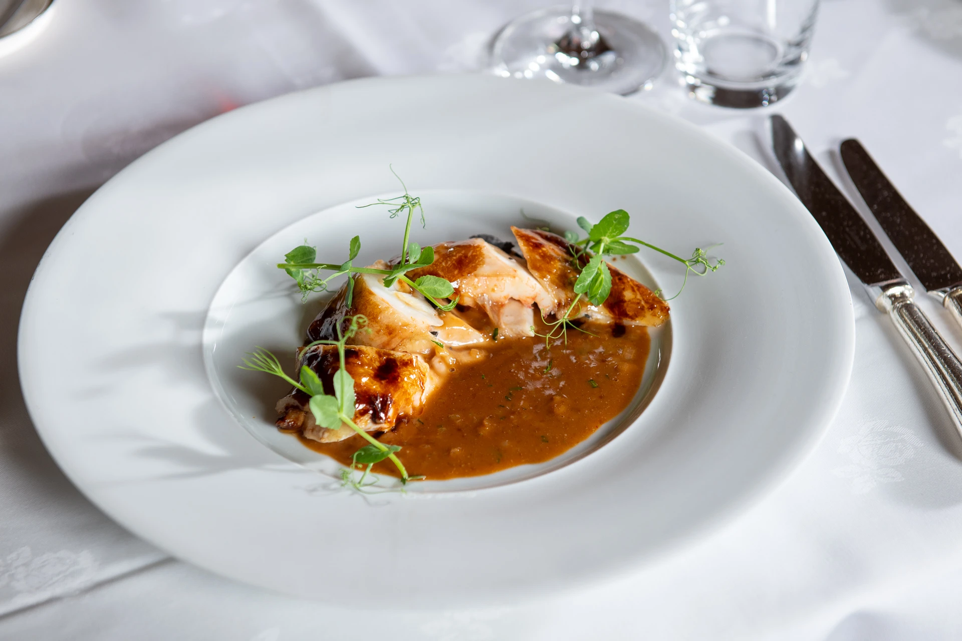 Dabei werden einzelne Gerichte von unserem Service-Team nach alter Schule am Tisch zur Vollendung gebracht. Wer Halbpension gebucht hat, wählt aus dem täglich wechselnden 4-Gang-Menü, die exzellent zubereiteten und liebevoll angerichteten Gourmet-Kreationen aus.