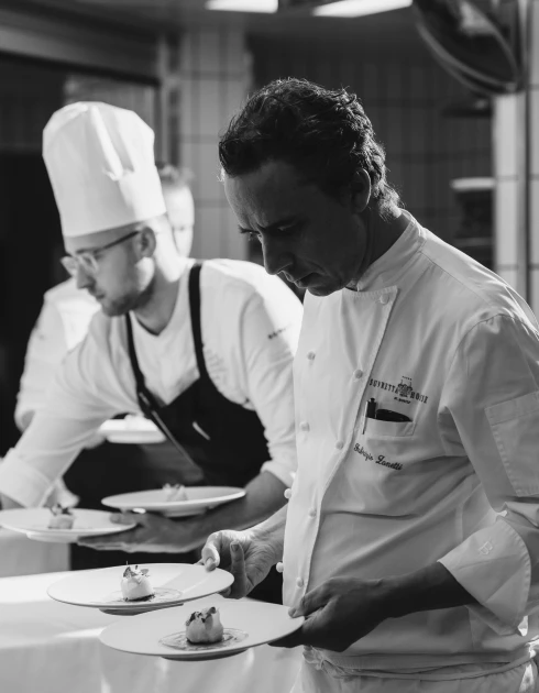 Das Chef's Table Menu gestaltet sich stets anders, ganz dem Gusto des Gastes entsprechend. Unser Küchenchef Fabrizio Zanetti, "Aufsteiger des Jahres 2024" im Guide GaultMillau, stimmt mit Ihnen gemeinsam die Speisen ab, empfiehlt Ihnen Gerichte auf Basis marktfrischer Produkte, welche täglich ins Suvretta House angeliefert werden.