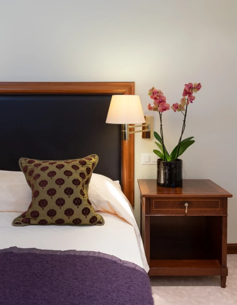 Durch grosszügige Fenster wird der Blick auf die Corviglia und den Piz Nair freigegeben. Die warmen Farben in diesen 35 bis 40 m² grossen Zimmer kreieren eine Tranquilität, die zur Ruhe und Entspannung einlädt. Nach einem aktiven Tag in der atemberaubenden Oberengadiner Natur kommen Sie gerne «nach Hause».